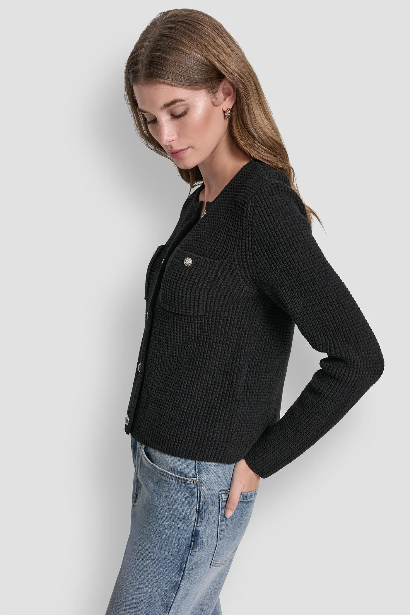 TUCK STITCH CREW NECK CARDIGAN