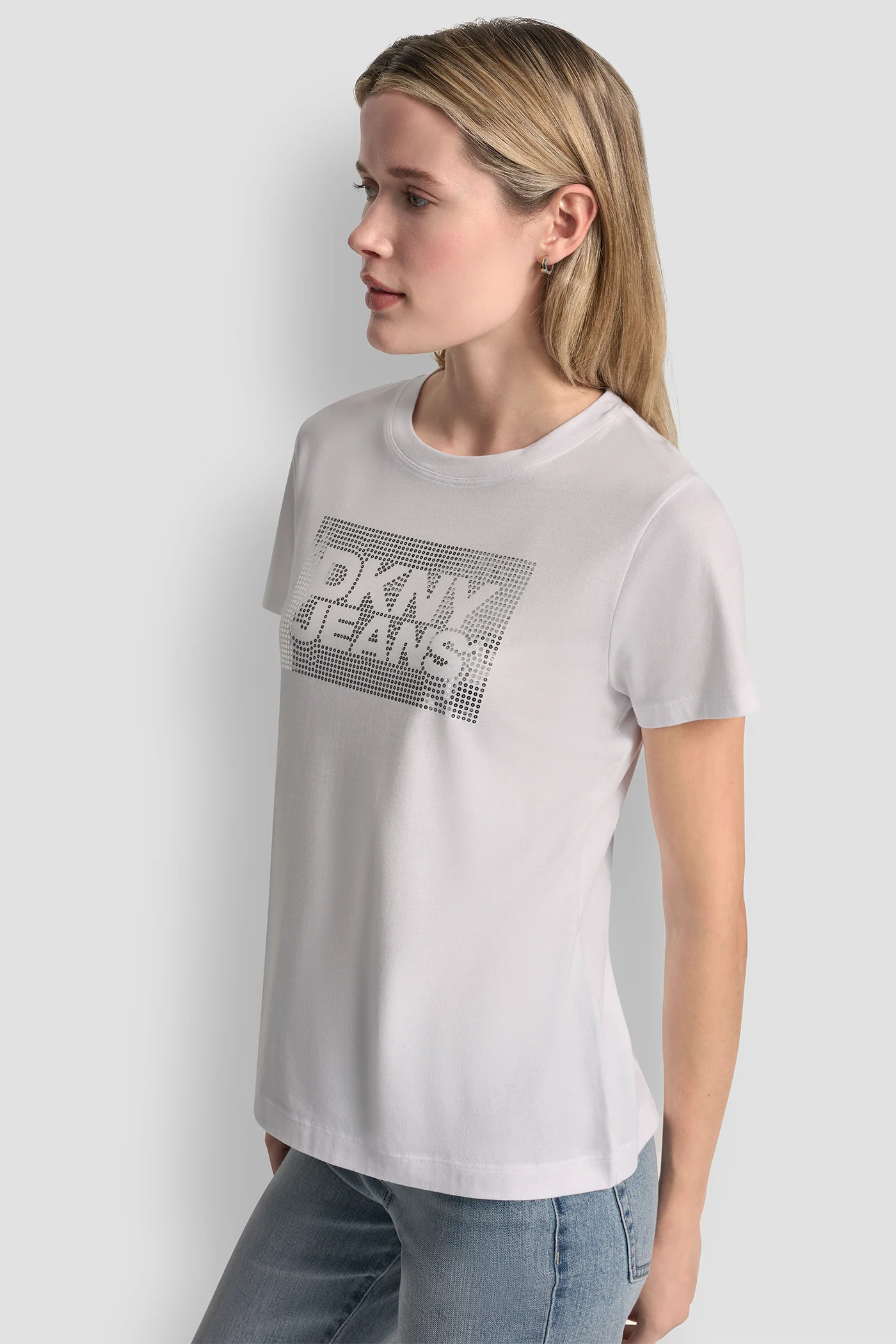 DKNY JEANS STACK LOGO RHINESTONE TEE